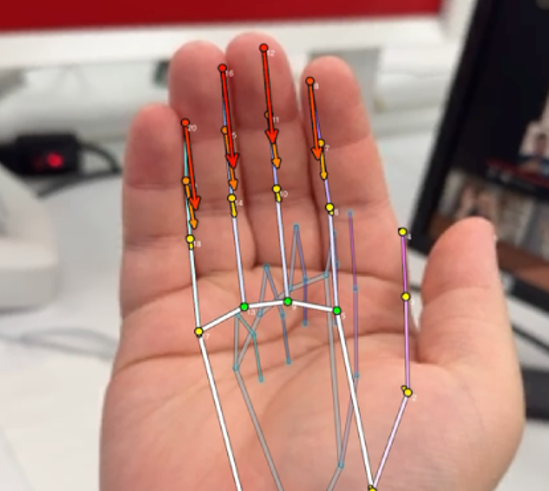 • Landmarking of the hand, including vectors for finger orientation.